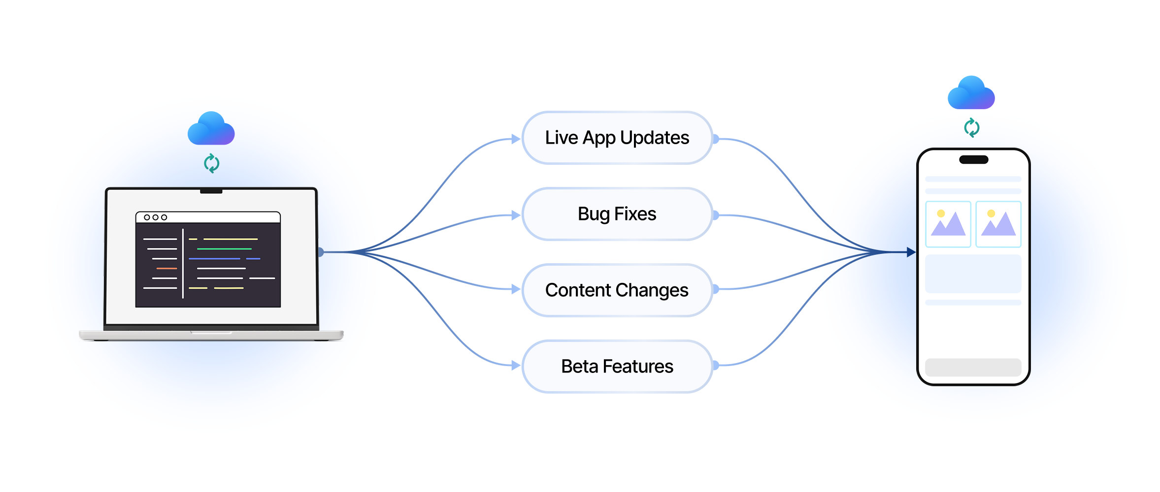 Seamlessly deliver live app updates, critical bug fixes, content changes, beta features, and more to give your users the best experience possible