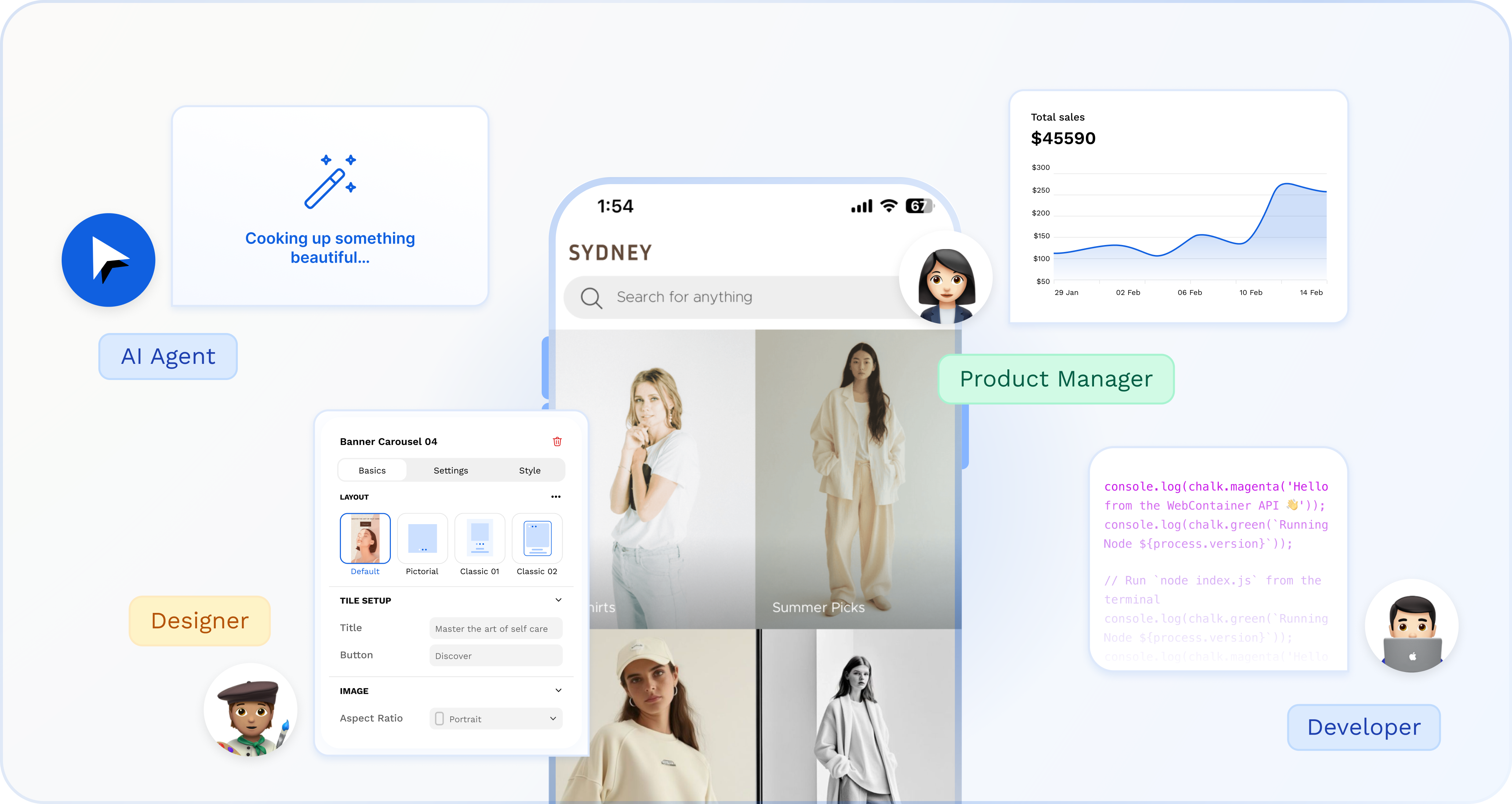 Using our fleet of specialized AI agents, designers, developers, and entrepreneurs can build