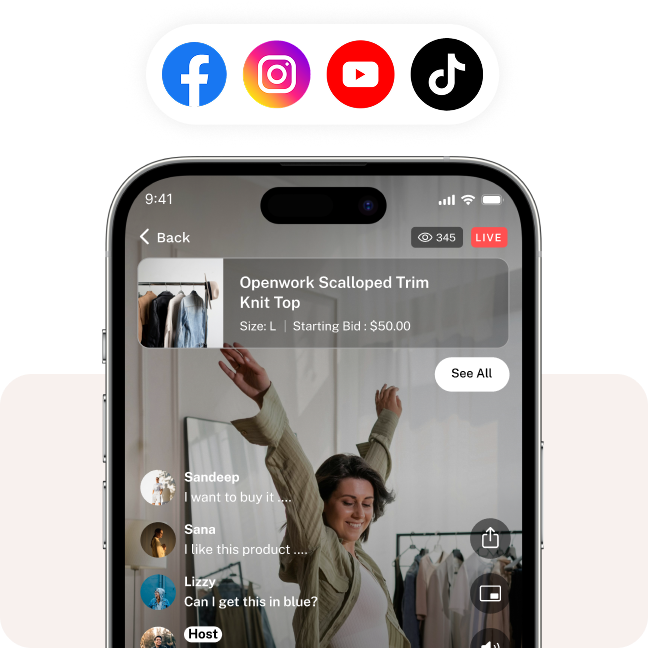 Drive Sales and Grow Your Online Store with Multi-Platform Live Streaming directly on your mobile app, website, YouTube, and more!