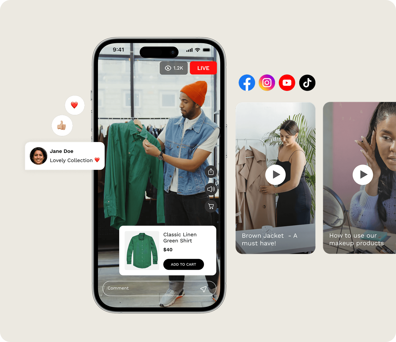 Host live shopping sessions directly in your mobile app. Showcase products in real-time, answer questions, and drive instant sales.